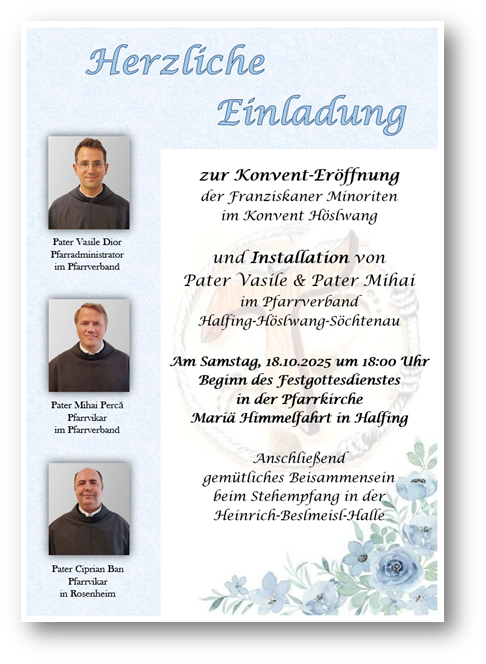 18:25 Rosenkranz und Beichtgelegenheit19:00 Herz-Jesu-Freitag-Gottesdienst